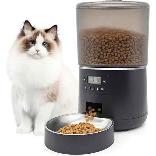Automatic Cat Feeder with Timer 4L - 304 Stainless Steel Bowl & Portion Control