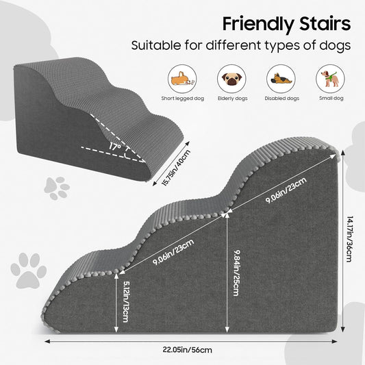 Pet Stairs for Small Dogs & Cats - Curved Design with High-Density Foam Steps
