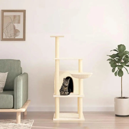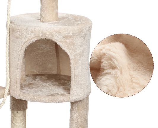 Cozy Beige Cat Tower with Comfy Perches & Hideaway
