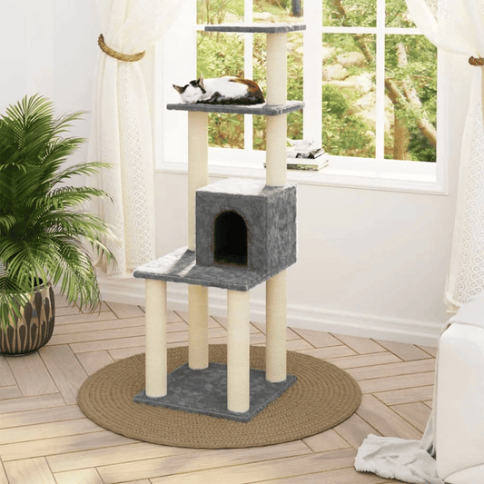 Soft Grey Cat Scratcher Tower
