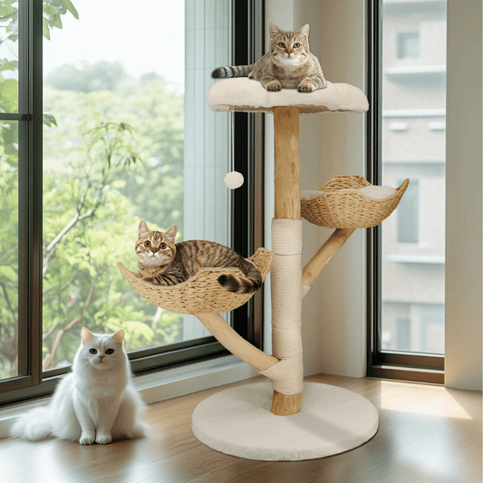 Stylish Cat Tower with Natural Perches & Rope Scratching Posts