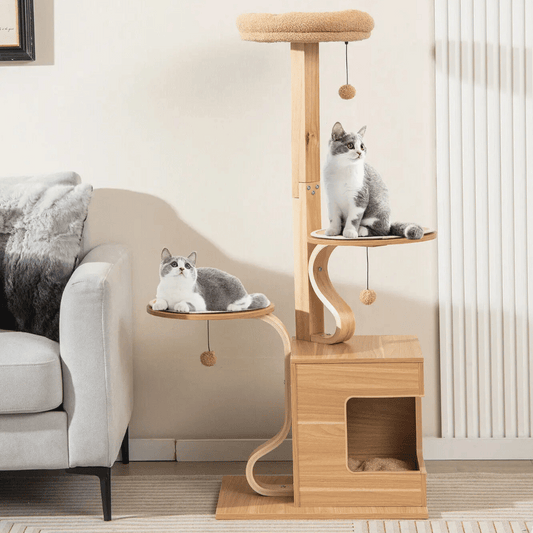 Large Wooden Cat Tower with Soft Perches & Hideaways