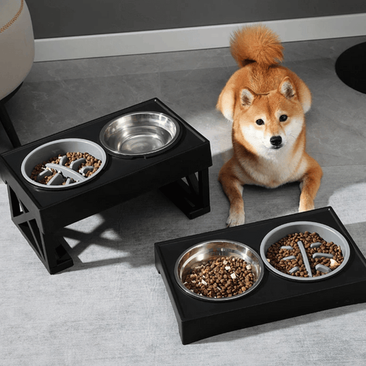 Elevated Pet Feeder with Stainless Steel Slow Feed Bowls